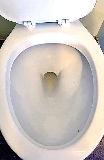 Restoration of optimal flushing pressure by repairing toilets that drain sluggishly due to partial clogs in the trap or sewer junction point.